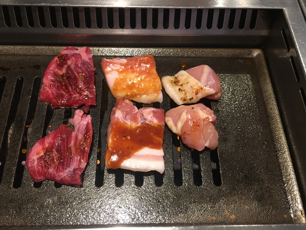1,000円の焼肉セットというのがあるのでそれを頼みましたが、牛豚鳥の3種類の焼肉で、鳥は分厚く焼くのが大変でした。