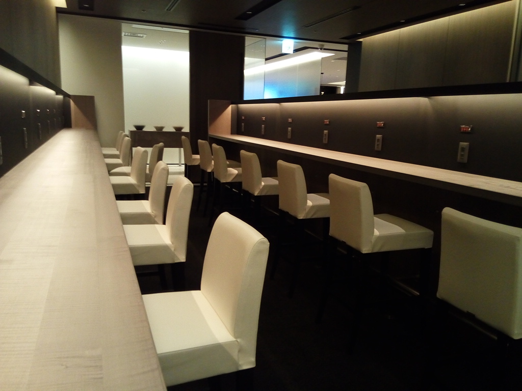 以前喫煙ルームだったところかな?そこがカウンター席になっていて、ソファ席も新しいデザインのソファもありました。