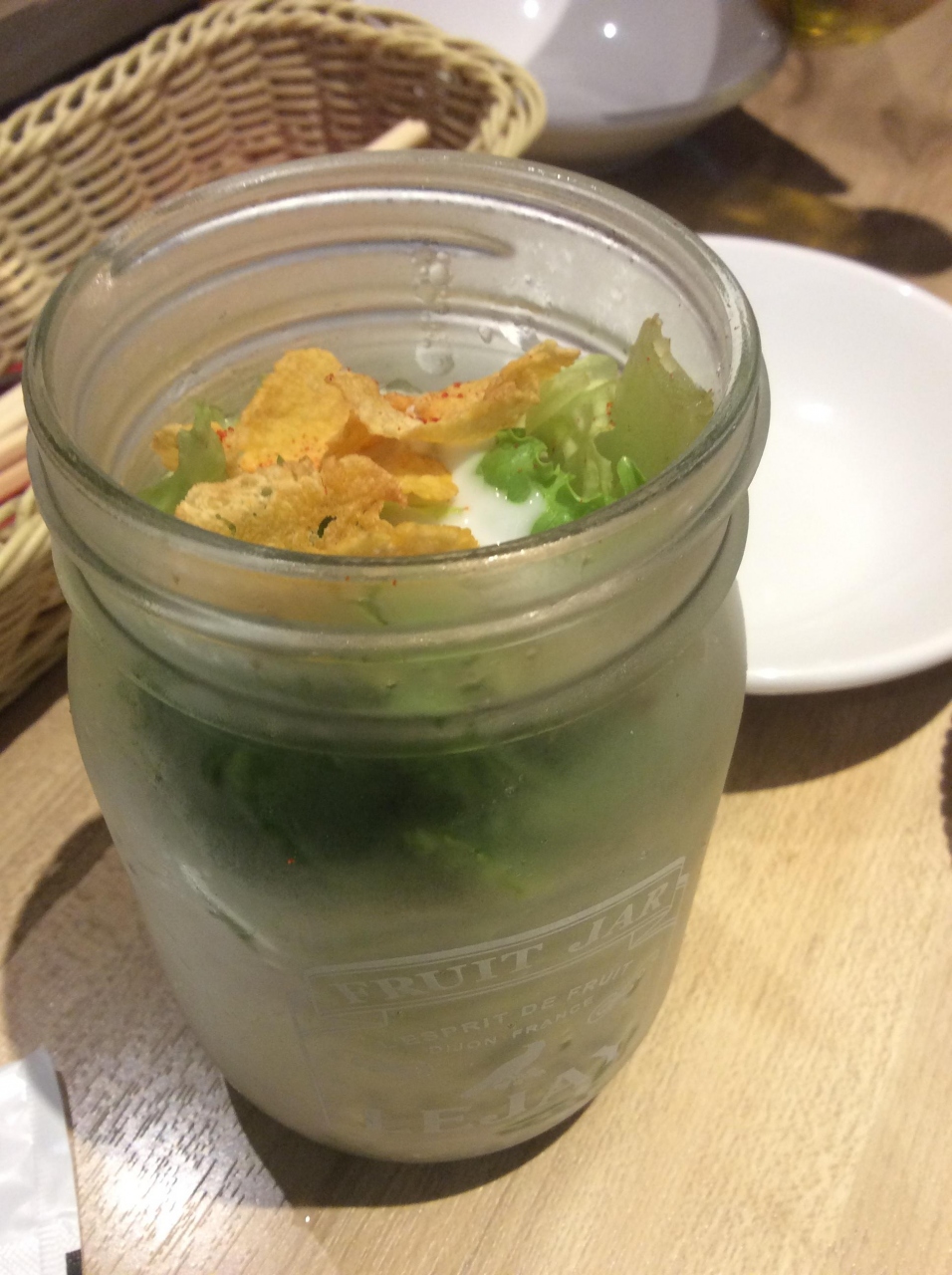 ランチはパンとサラダが付いていてサラダはジャーサラダで見た目はオシャレ。