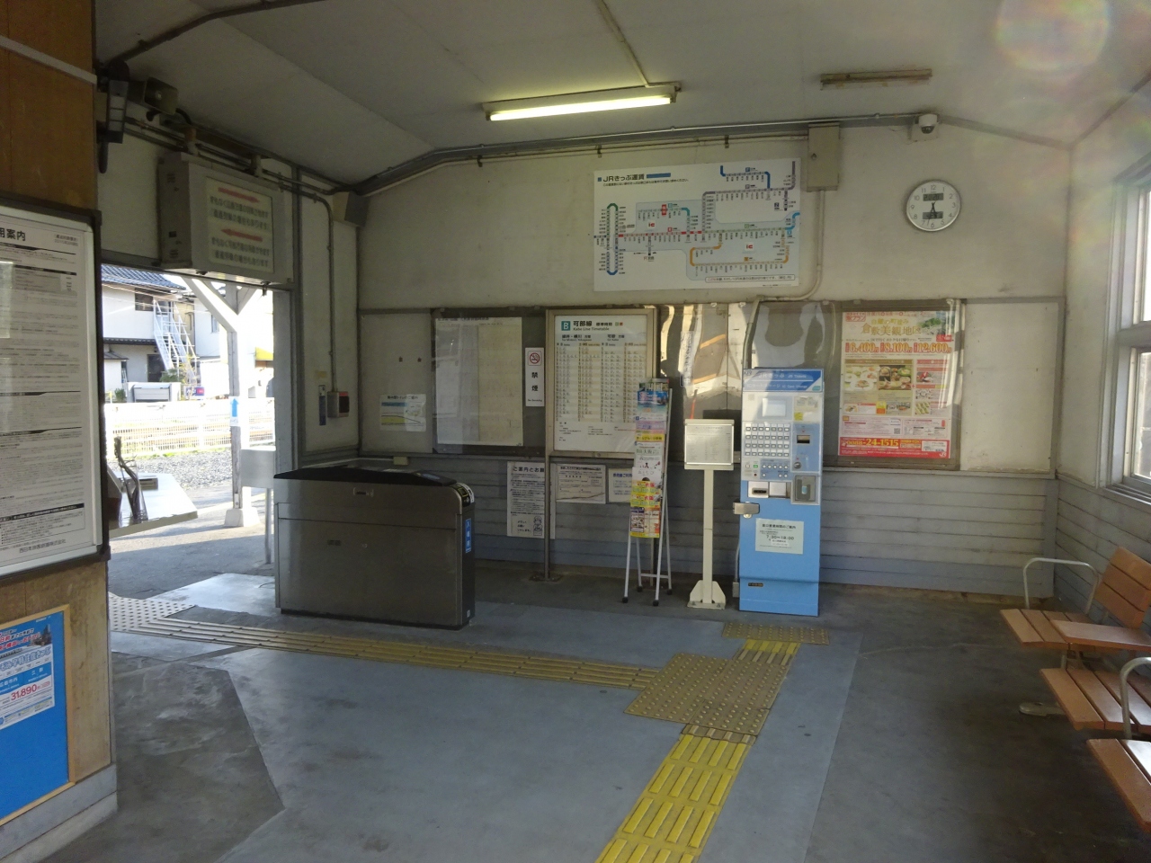 駅舎はホームの可部駅寄りにあり、線路沿いに50mぐらい離れています。その途中にトイレがあります。平日のみ有人駅のようで、電車が発着するときだけ改札口の横に駅員が立っていました。