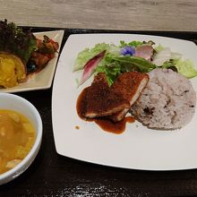 平日のランチで訪問しました。13時過ぎていましたが、店内はけっこう埋まっていました。ホテルプラムの外観では想像できないような素敵なロビー、女性が好きそうな雰囲気の白を基調とした店内で、女性のお客さんが多かったです。ランチメニューは6種類位ありましたが、私は1,080円の週替わりのランチプレート(ヘルシーチキンカツレツ)にしました。お味の方は、どれも普通でした。食後にはコーヒーが付きます。ケーキセットが600円ととてもお得価格のようで、次回はランチの後に来てみようかなと思いました。