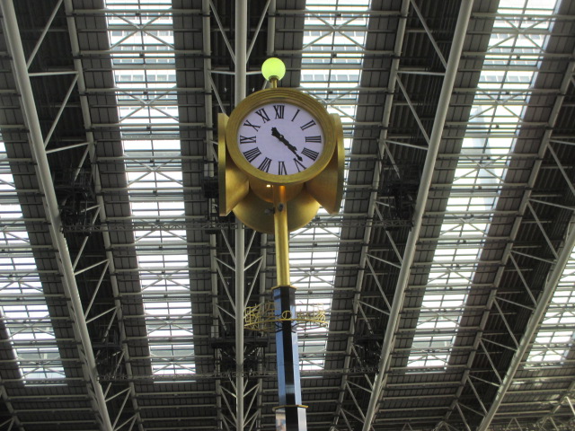この時空は”とき”と呼びます。”とき”と呼ぶには理由があります。この広場には、ゴールドの時計が建っていて、この広場では、このゴールド時計がすごい存在感を放っています。この時計のポールに”時空の広場”とあります。時計広場と名前を変えたらいいのにと思いました。