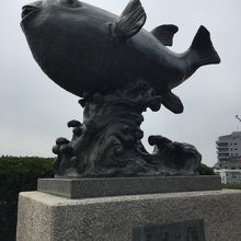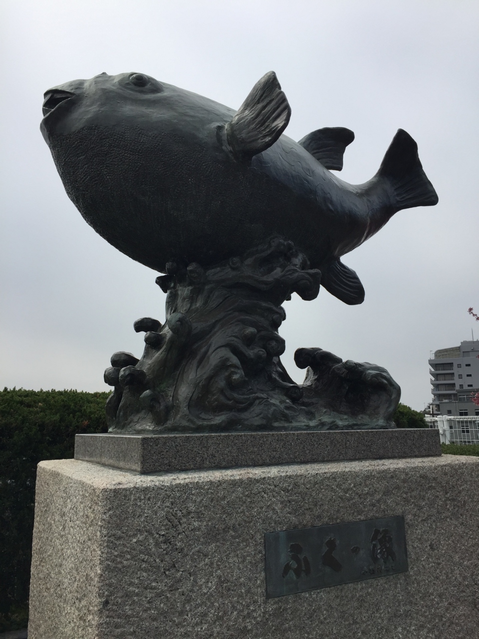 初代の銅像は昭和9年に作られたそうですが、戦争中、金属が足りなくなり、姿を消しました。 2代目の銅像は、平成元年に下関のふくを愛してやまない有志により再建されたそうです。