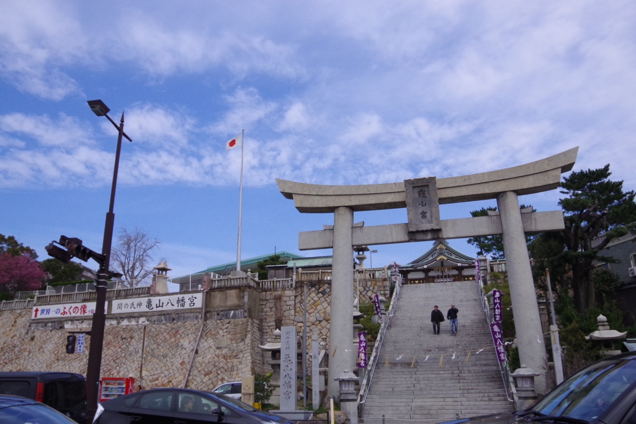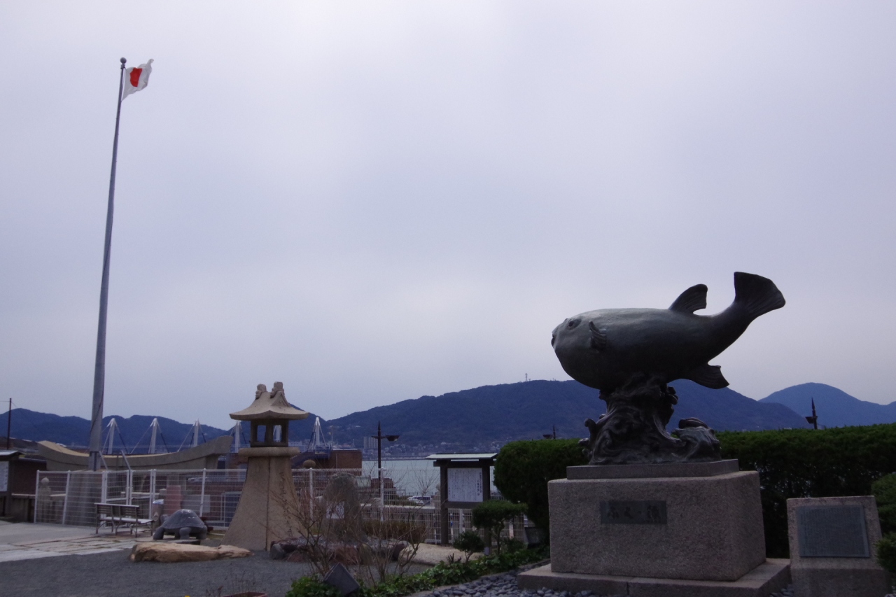 世界最大のフグの像があります。 御影石の鳥居も日本最大!
