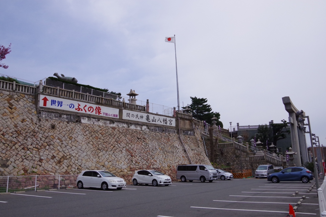 下関駅からバスに乗ること10分くらい。 唐戸というバス停が最寄りです。 カモンワーフや唐戸市場の道を隔てたところにあります。