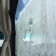 黒部ダムに向かう途中にあり、いちどは行きたいと思っていたので良かったです。バスの中からの見学で、通常20メートル近くあるとのことでしたが、行った時には14メートルの高さとのことでしたが十分な迫力がありました。8割は外国の観光客とのことで台湾の方が多いそうです。