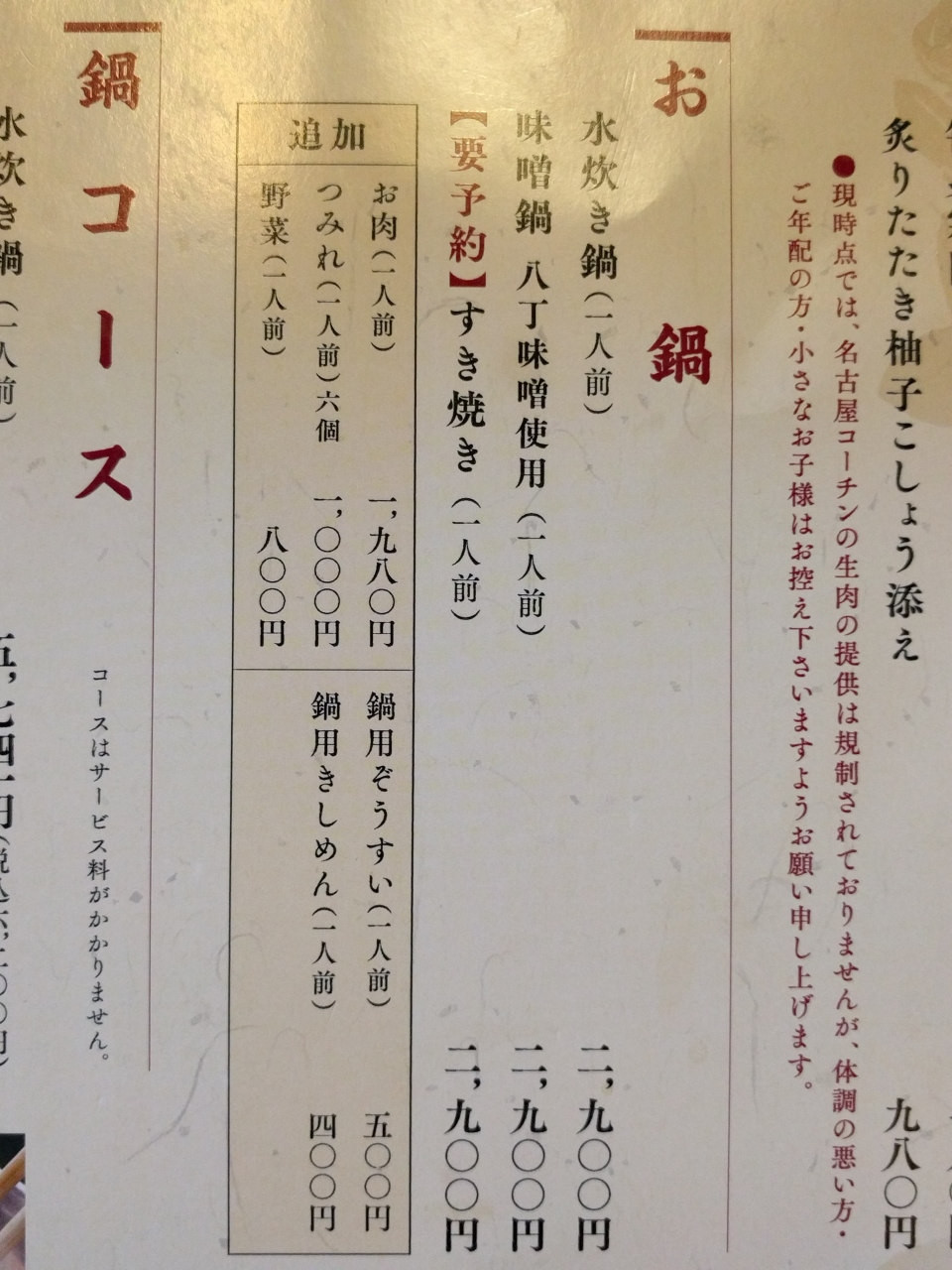 「旬菜 一鳳 にしき」に行った。名古屋コーチン・鍋の店、頼んだのは水炊き鍋だ。先ずは名古屋コーチンを食って、それから野菜など。その後に名古屋コーチンの旨味が詰まったスープで作る雑炊でフィニッシュ。雑炊がうまかった。
