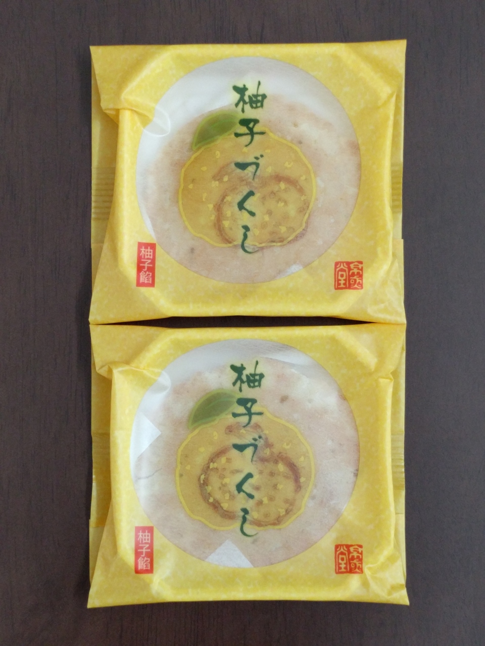 ゆず餡とゆず餅がゆず煎餅にサンドされた、まさに商品名通りの『柚子づくし』をお土産にしました。