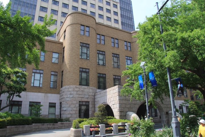 日本大通り沿いにある低層部に旧建物を復元して高層ビルに生まれ変わった建物が特徴的です。低層部は戦前に建てられた代表的な官庁建築で、茶系のタイル張りがとても落ち着いた雰囲気を醸し出していて良かったです。