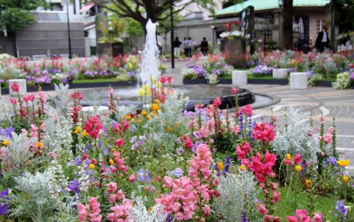 普段は素通りしてしまう広場ですが、花々が植えられていると自然に足が止まり見入ってしまいました。やはり花々は街に潤いを与えますね。