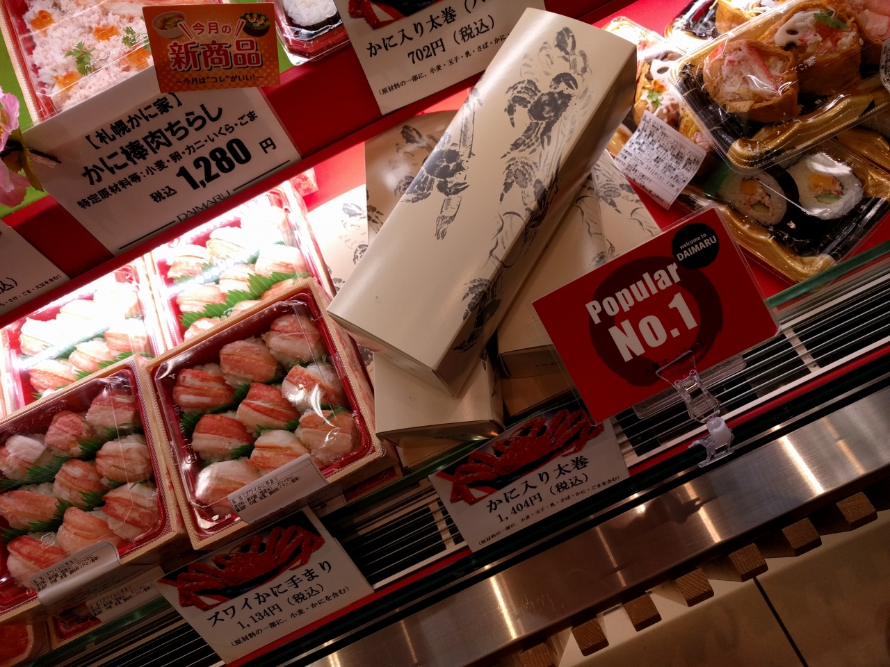 「札幌かに家 大丸札幌店」に行った。かに専門店。そういや名古屋にも店があったっけな。時間が遅くなりめんどくさくて部屋食にした。かにの種類により値段は様々だ。本タラバものは高いね。今月の新商品、かに棒肉ちらしがうまかった。