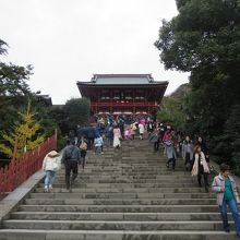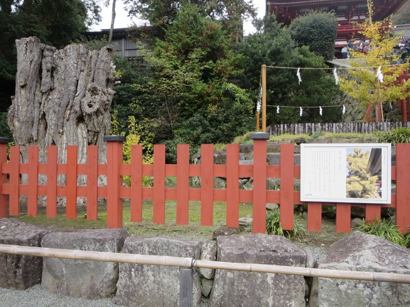 休日だったのですごい人出でした。舞殿では結婚式が行われていて、外国人観光客が写真を撮っていました。七五三の時期でもあったので、本殿では、七五三詣での親子がたくさん祝詞の順番を待っていました。階段脇では2代目のイチョウが元気に育っていました。