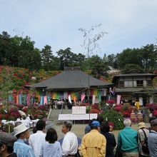 塩船観音寺のすり鉢状の囲まれたつつじの花咲く山の底に護摩堂があります。行った5/3はこの護摩堂の前に用意された広場では、山伏が火のついた護摩の上を素足で渡る火渡りの荒行が訪れる日でした。護摩堂の前は荒行が行われる1時間前から人だかりの山。余りにも人が多く、見たかったけど諦めました。11時ごろから行われるので、早めに行った方が良いです。