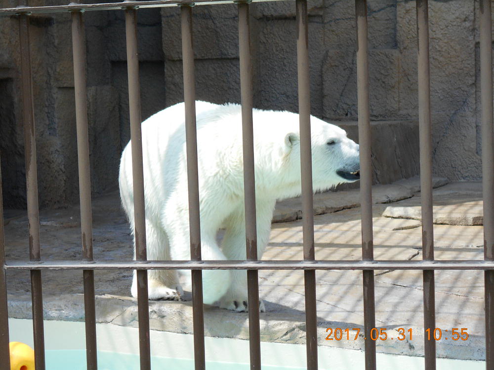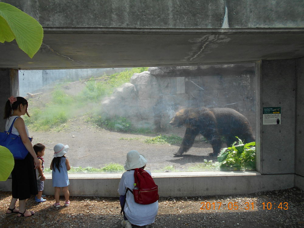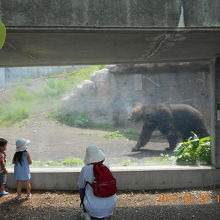 シロクマの前で園児たちは「リラ、リラ」と呼んでいました。