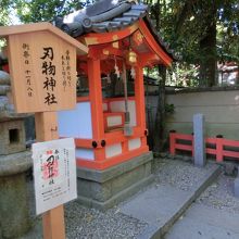 刃物神社の社殿は、八坂神社本堂の裏側にある。