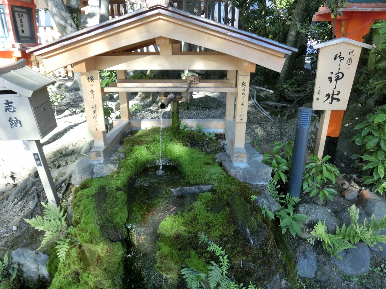 祇園神水は「力水」とも呼ばれ、水を飲んだ後、隣接する美御神社にお参りすると美人になるといわれている。