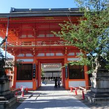 修これが八坂神社の正門、修復を終えたばかりで朱色も鮮やかだった