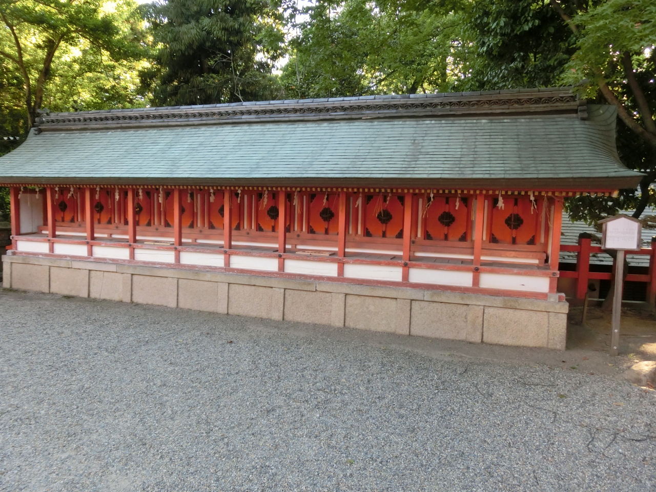 例えば、素戔嗚尊の父・伊邪那岐命(いざなぎのみこと) を祀る多賀社や、母・伊邪那美命(いざなみのみこと)を祀る熊野社など十の社が、自販機みたいに横並びになっている。