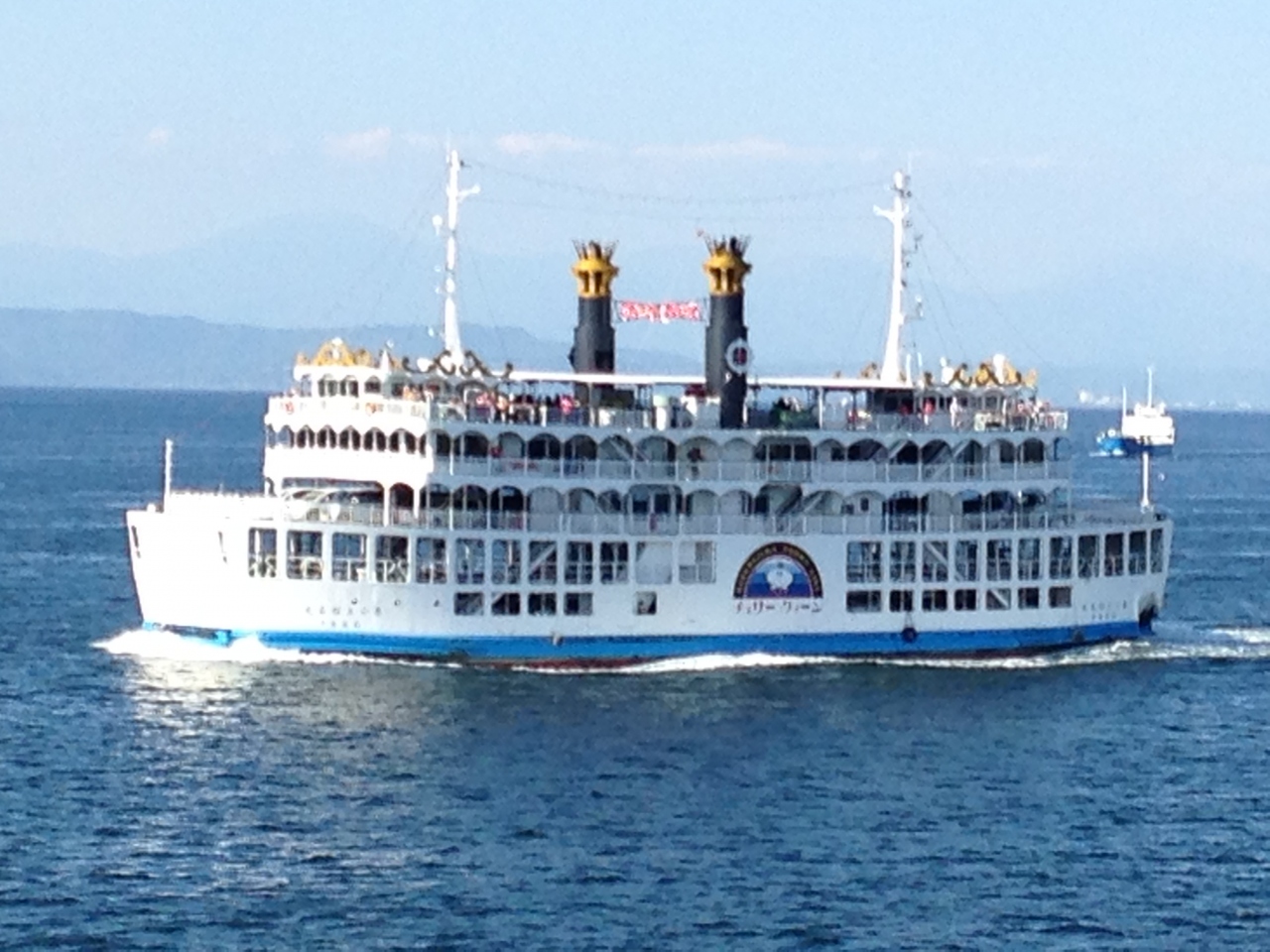 海風に当たるのでデッキに出ると涼しいほどでした。無料の双眼鏡(100円を投入して見るような遠くまでよく見える)がありました。揺れも気にならないし、行き(桜島)帰り(市内)両方の景色がよくて満足でした。