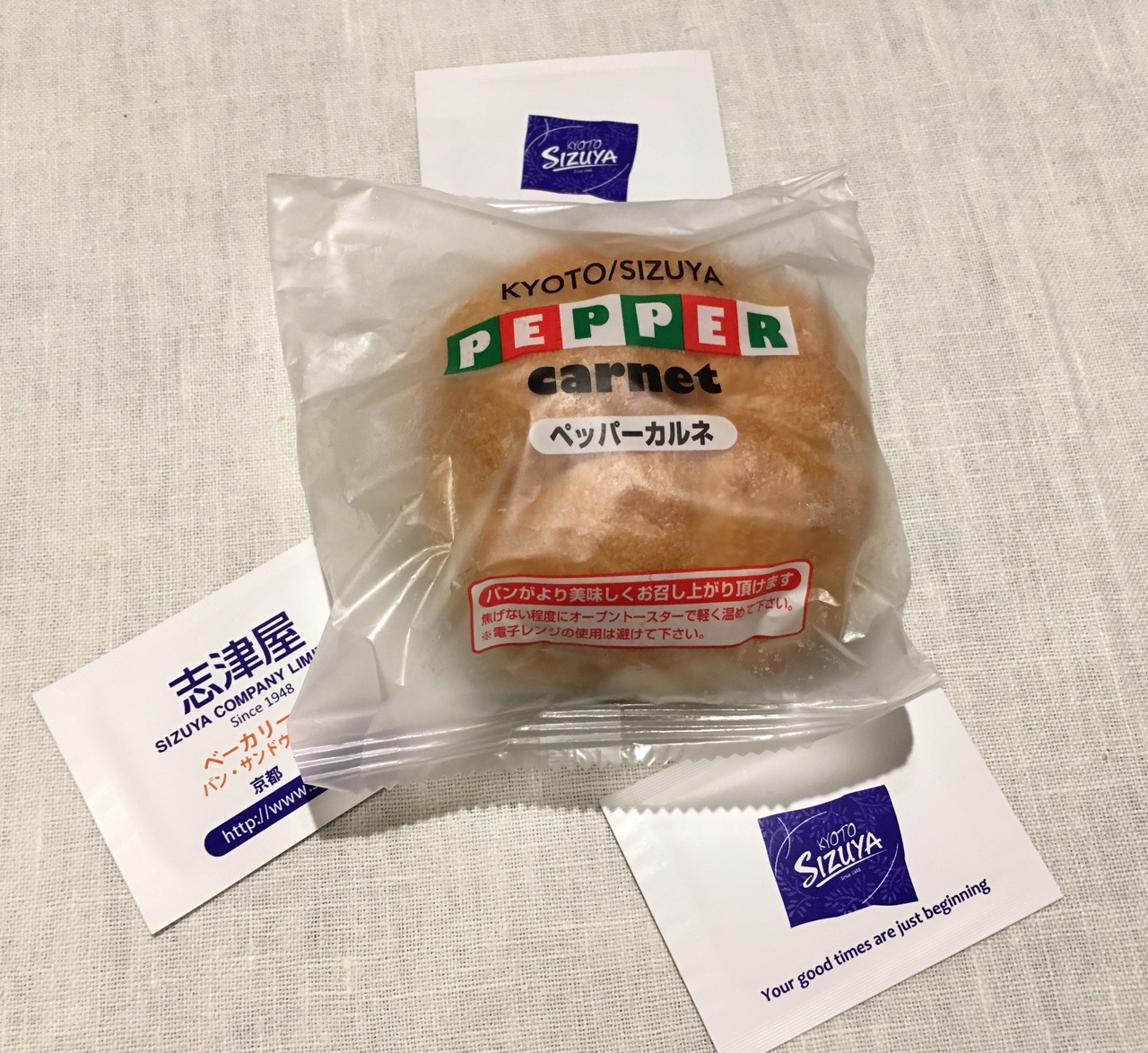伏見区の大手筋商店街にある志津屋です。志津屋は京都に住んでいるとどこにでもあるので買いやすいパン屋さんの1つです。店にはいろいろなパンがありますが、おいしいのは、ペッパーカルネと言うサンドイッチの1つだと思います。特別、安いわけではないですが満足できるボリュームとおいしさが癖になります。