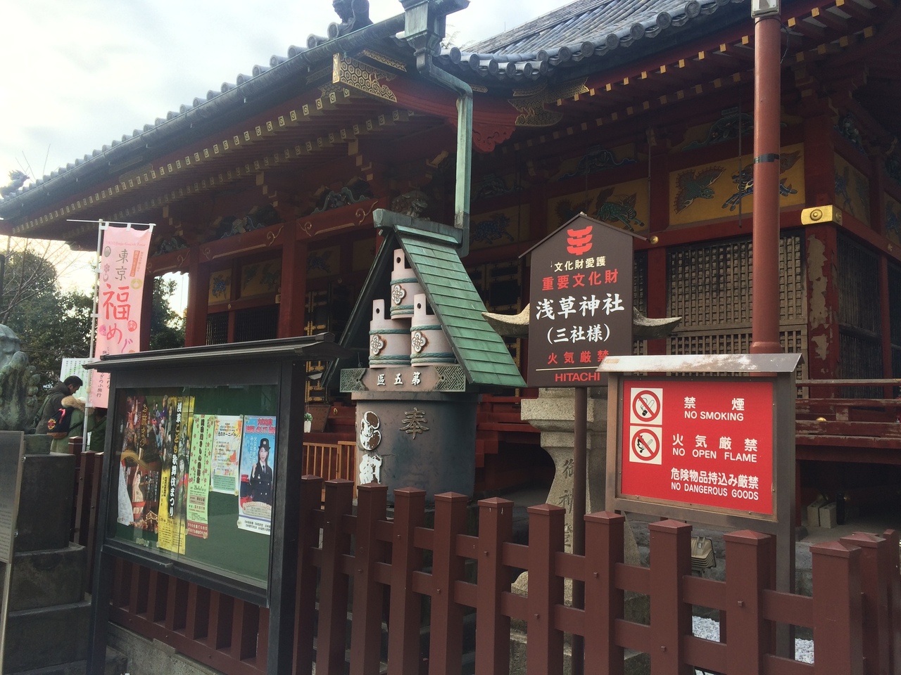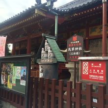 浅草寺境内には様々な建物がありますが、比較的大きな神社です。本堂の裏手にあるので観光客はあまり来ないのか少なめでした。三社様と言われて広い空間がありました。左右には細長い木が植えられ、広い空間と人が少なめだったのでゆっくり参拝出来ました。