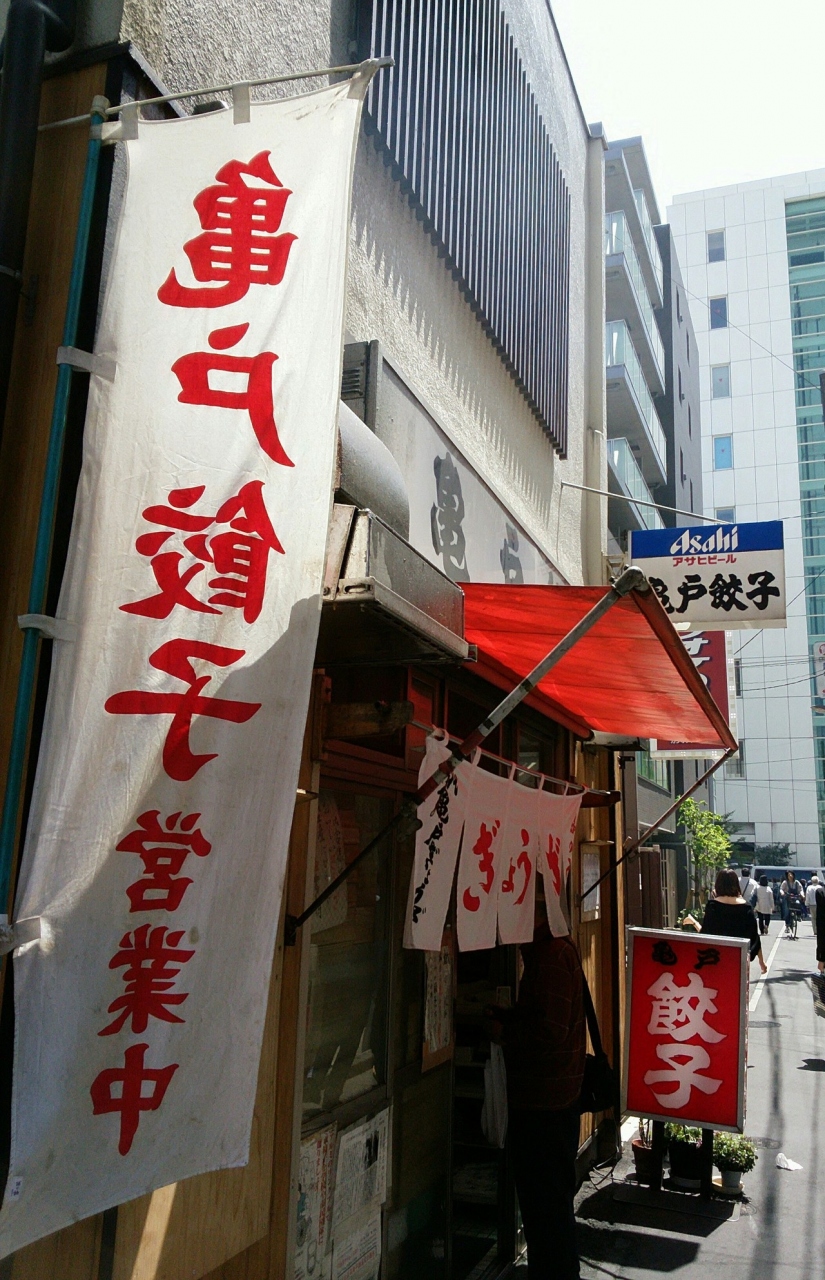 亀戸駅から徒歩1~2分、駅前のメインストリートから一本入った路地沿いにあります。かなり古いお店で、店内も狭く、お世辞でもキレイとは言えませんが、お店の前には何十人かの行列ができていました。焼きたての餃子はアツアツ、ジューシーで美味しかったです。