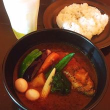 野菜は素揚げ茄子、ピーマン、おくら、ブロッコリー、うずらの卵、ヤングコーン、ボイルされた人参が入っていて美味しかったです。