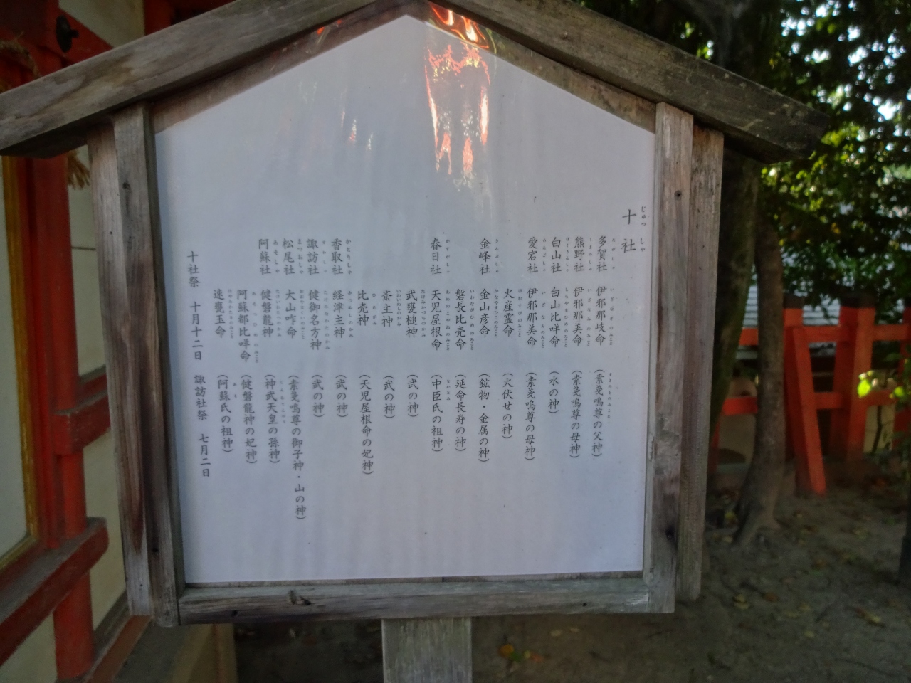 建物横にはそれぞれの神社のご祭神が記されている説明板があった。