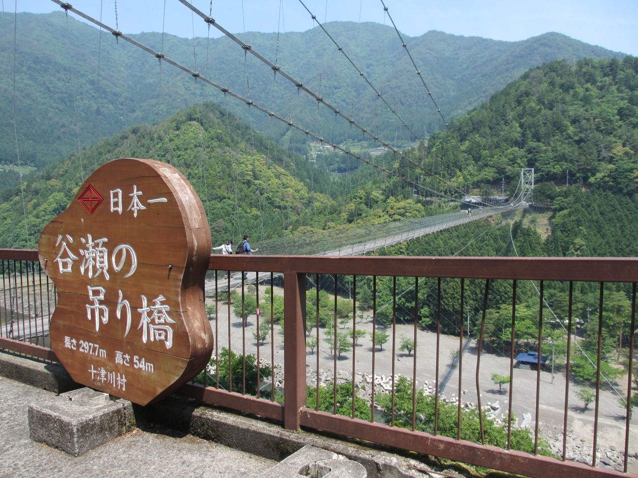伊勢神宮から高野山へ向かう際、十津川村に一泊しました。日本一大きな村で、鉄道が通ってないため、移動はバスや車になります。透明の豊かな湯量が湧き出る温泉もあり、観光というよりも温泉に浸りのんびり過ごす、山間にある村といった感じです。村には山に囲まれた、長さ297m、高さ54mの鉄の吊り橋“谷瀬の吊り橋”があります。歩くたびに揺れる吊り橋はスリル満点、好奇心と恐怖心が交わった空中散歩を楽しむことができます。車で10分ほど山を登ったところには、世界遺産である熊野古道の一部も通っています。西村京太郎作品に出てくる十津川警部は、この村から名前を取ったそうです。