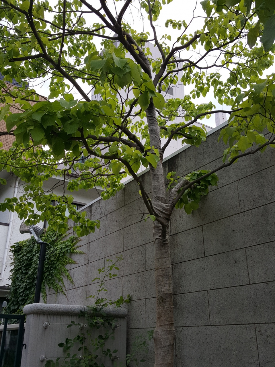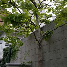 開港広場の一番奥の隅にあるのでちょっとひょろっとしていますが青々とした葉をつけていました。