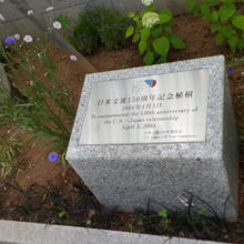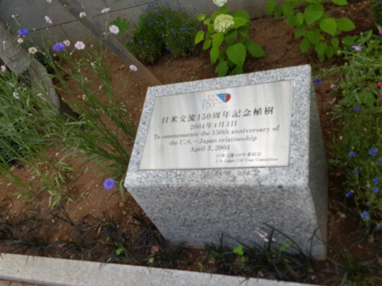 1854年に締結された日米和親条約以来、150周年の記念として2004年4月3日に植樹されたハナミズキです。