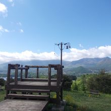 高原野菜の畑がどどーんと広がり、目の前には浅間山などの山並みのまさにパノラマが楽しめます。