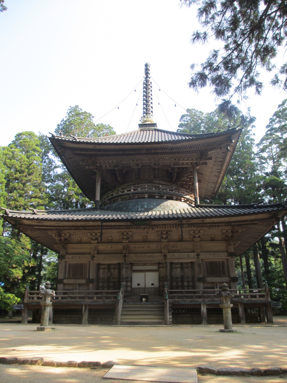 壇上伽藍に建つ数あるお堂の一つで、大きな杉に囲まれるようにして建っています。現在の塔は5代目で、1834年に建てられました。高さが27mほどある歴史ある多宝塔ですが、根本大塔が48.5mもあるため、それほど高いとは感じません。立派なお堂なのに根本大塔のような艶やかさもなく、インパクトが薄くかわいそうになってしまいます。個人的には風格と落ち着きが感じられる西塔の方が歴史が感じられ好きなのですが。