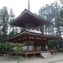 壇上伽藍から金剛峯寺に向かう蛇腹道沿いに建っています。再建されて30年余りという若いお堂です。中には本尊の他、二仏が安置されていますが、非公開なため見ることはできません。新しいだけあって美しく朱色が映えていますが、その先に建つ根本大塔の高さと鮮やかさに目が奪われ、立ち止まって眺める人は少ないです。