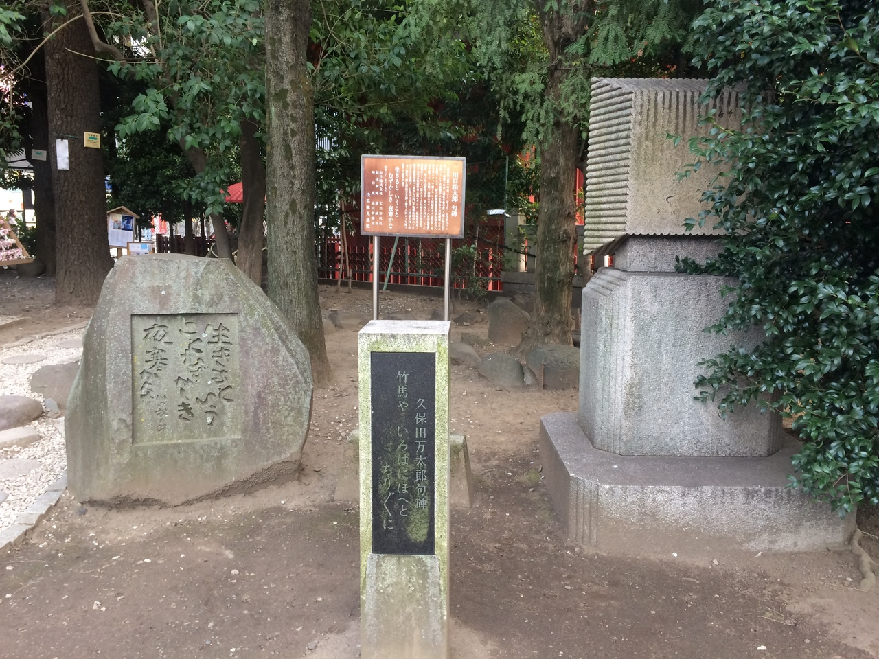 説明看板の句碑が単純明快で分かりやすい句でしたが説明文に漢字、カタカナが入り混じり読みにくかったです。看板には映画会社、新聞社、出版社、劇団等の名も連なっていました。石碑は長方形っぽい形の下枠の中に歌が書かれたいます。