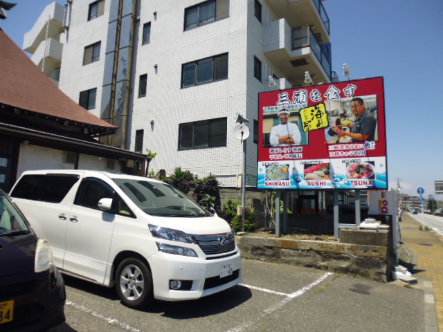 大きな写真看板があるので分かりやすいところです。海沿いのため、いろいろな新鮮魚料理が豊富です。