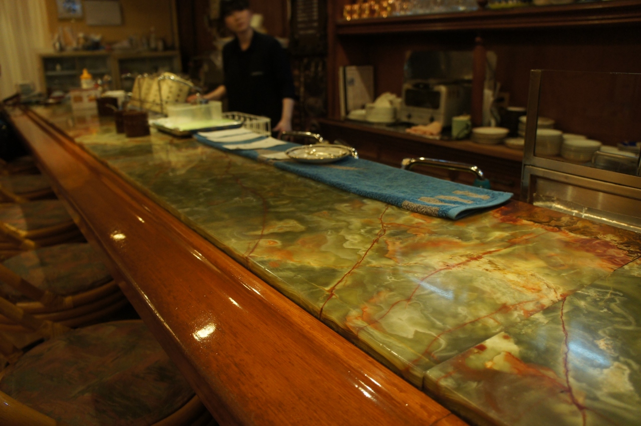 大好きなコーヒーを飲みながら、ちょっと休憩をしたいと思ってアーケード街を歩いていたら、偶然にもこの喫茶店を見つけました。店の前の頭上にはコーヒー樽が二個吊してあり、入り口の横には目を引く看板が立っていました。入店すると話し好きなおばちゃんがいて、つい旅の話ではずんでしまいました。勧められるまま、奥のカウンターに着席。目の前で数本のサイフォンがあり、男女のスタッフが忙しそうに厨房の中で動き回っていました。トーストとコーヒーのメニューが人気らしくて、それを注文してみました。アーモンドバターのトーストはアーモンドの香りとトーストの食感が見事にマッチしていて、コーヒーは香りとコクが最高でした。姫路城などの観光の後で、このお店を利用することをお勧めします。
