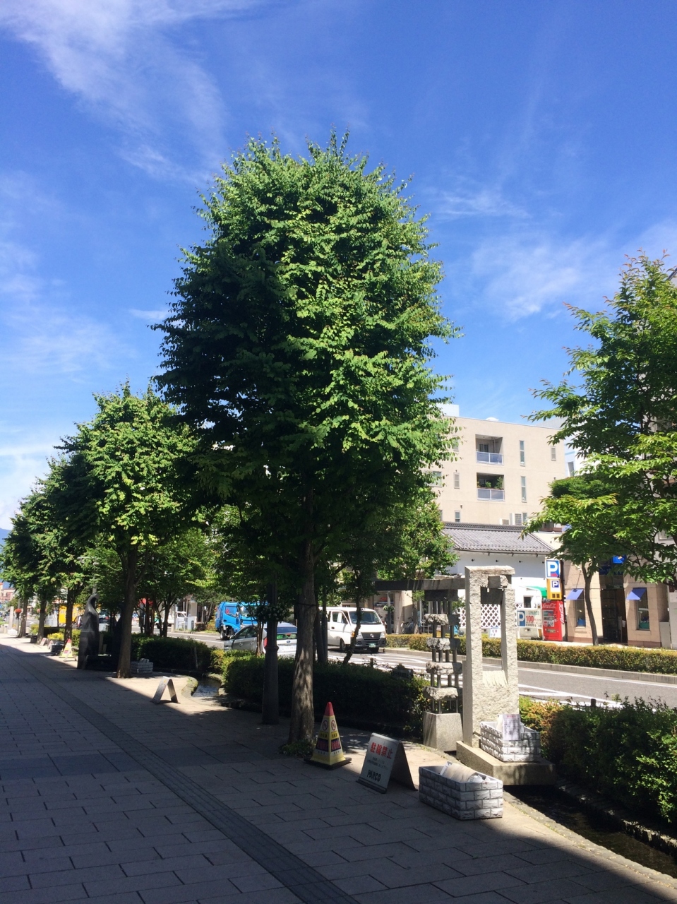 車道片側1車線の道で、歩道沿いには人工の水が出ている場所がいくつかありベンチもあるので歩いているだけでも気持ち良い場所でした。デパートのパルコ等、沿道には店が連なっています。からくり時計があり、歩いている時に見れたのでラッキーでした。