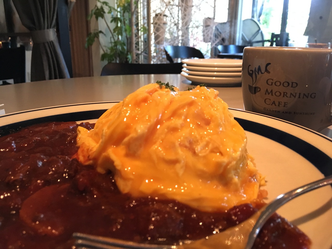 少々面食らってドギマギしていると、オムレツが出て来た。これがまた想像以上にこんもりしている。デミグラスソースの海に、お椀を伏せたような卵の塊。これはちょっと食べるのが大変かもと思ったが、そこはまぁふんわりオムレツなわけで、歯の無いご老人でも大丈夫であろうくらいにとろける。むしろ、うっかりすると噛まずに飲み込んでしまえて危険なのかもしれない。