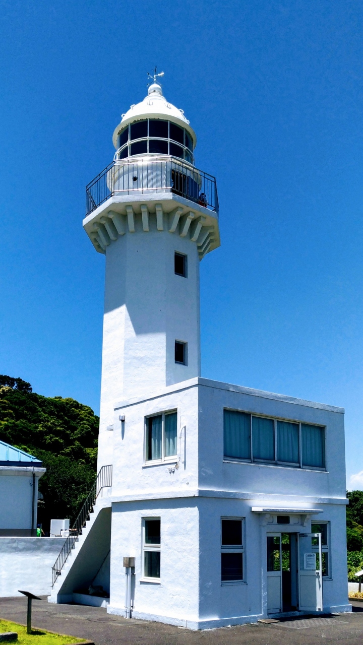 観音崎灯台は観音崎公園の中でも突端部の海岸沿いから41メートルほど急坂を登った場所に立つ白亜の灯台です。
