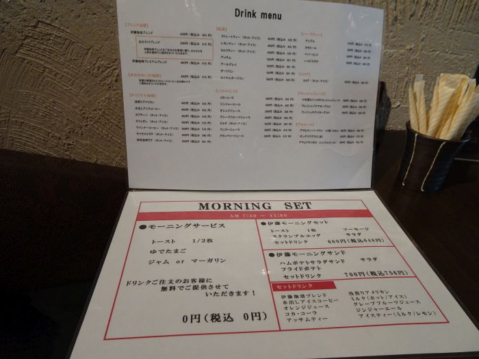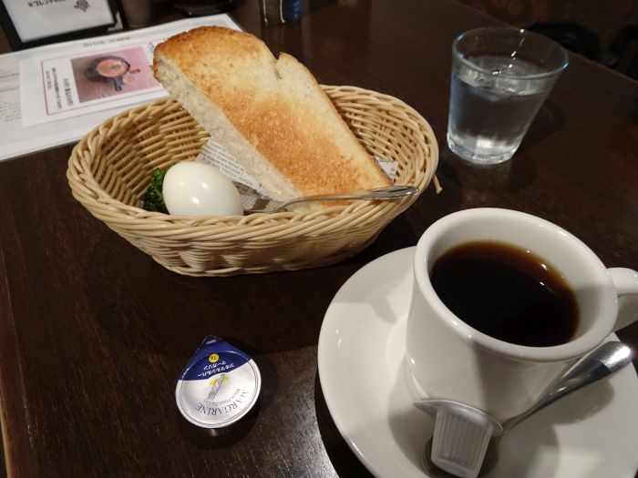 11時までは、飲み物を注文すると、モーニングセント(トースト、ゆでたまご)が無料で付くサービスをやっています。