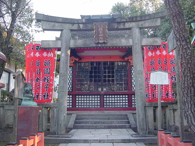 八坂神社の西楼門から境内に入ると、由緒正しいいろいろな社がありますが、中でも目立っているのが蛭子社です。えべっさんの幟が並び、多くの人が参拝していました。商売繁盛の社なので、関西の人には馴染みの存在なのかと思います。活気があります。