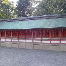 本殿だけではなく、周囲にある小さい社を回るのも八坂神社観光の醍醐味です。本殿の左隣にある十社は、10の小さい社が1列に並ぶユニークな建物。まるで弓道の的みたいだと感じましたが、一つ一つの社に意味があるのだろうと厳かな気持ちになりました。