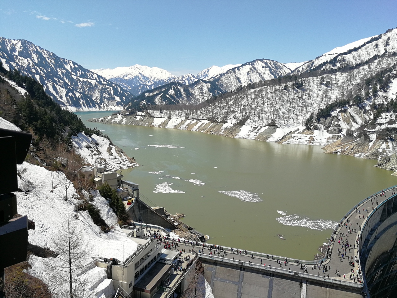 5月の初めて様々な雪の山をよく見える。また湖の氷が見えるのは面白い。大面積の植物は1、2か月ごろ後で、成長し始めると思います。では水の色は想像以上にきれいではない。上から下の道路を見て、強い人気をよく感じできます。