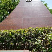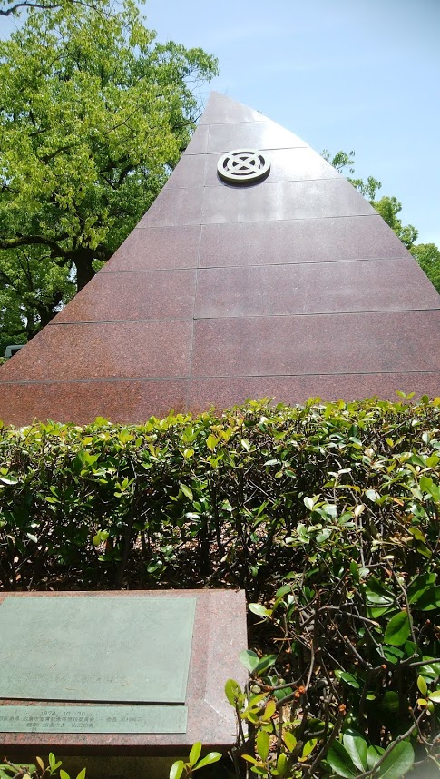 平和記念公園の南東エリアの一画に記念碑などモニュメント等が集まったエリアがあって、その中にこちらの平和の塔もあります。平和記念公園の中のメジャーなスポットがあるエリアではないので、週末でもほとんど人は居ませんでした。1辺4mの五角すいの変わった形状の塔で、赤茶色のカラーの御影石です。広島市が世界連邦都市宣言をしたのを記念して建てられたものです。昭和49年につくられたもので、5面は5州を表しています。
