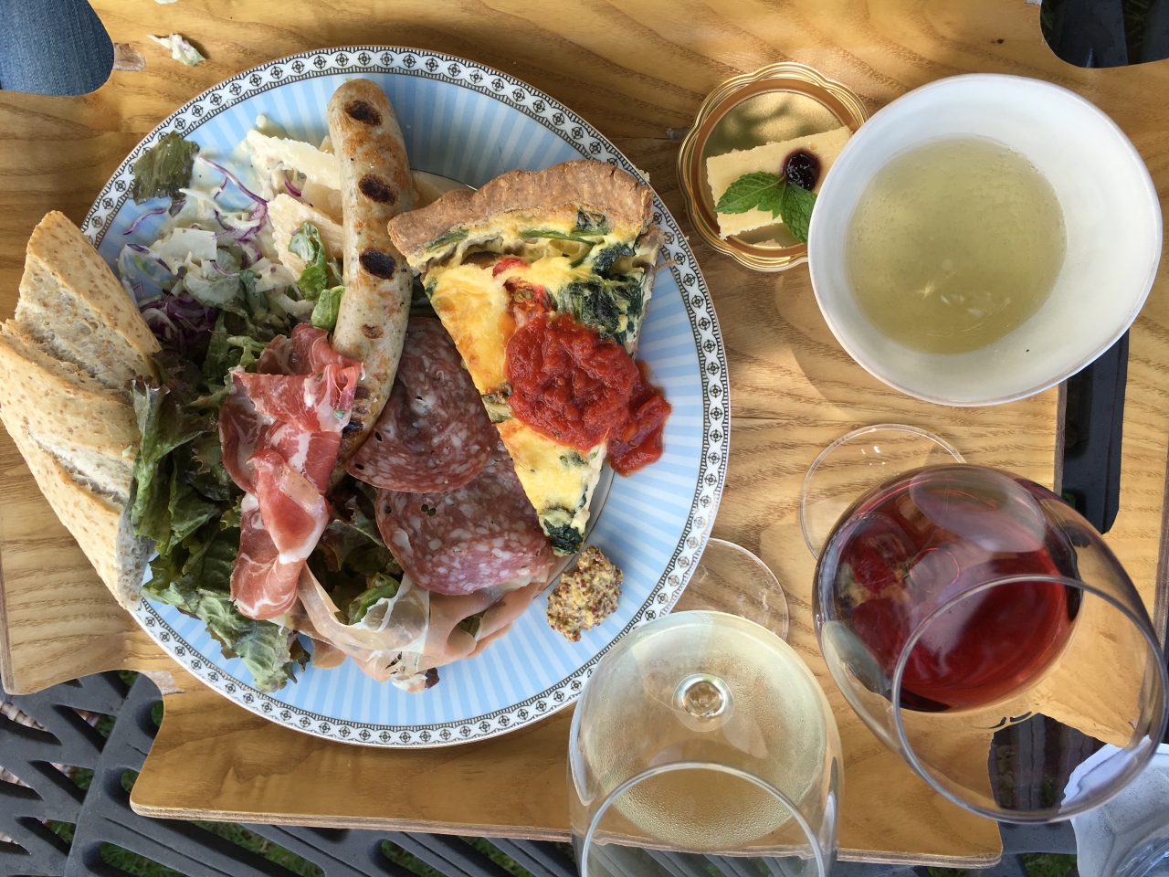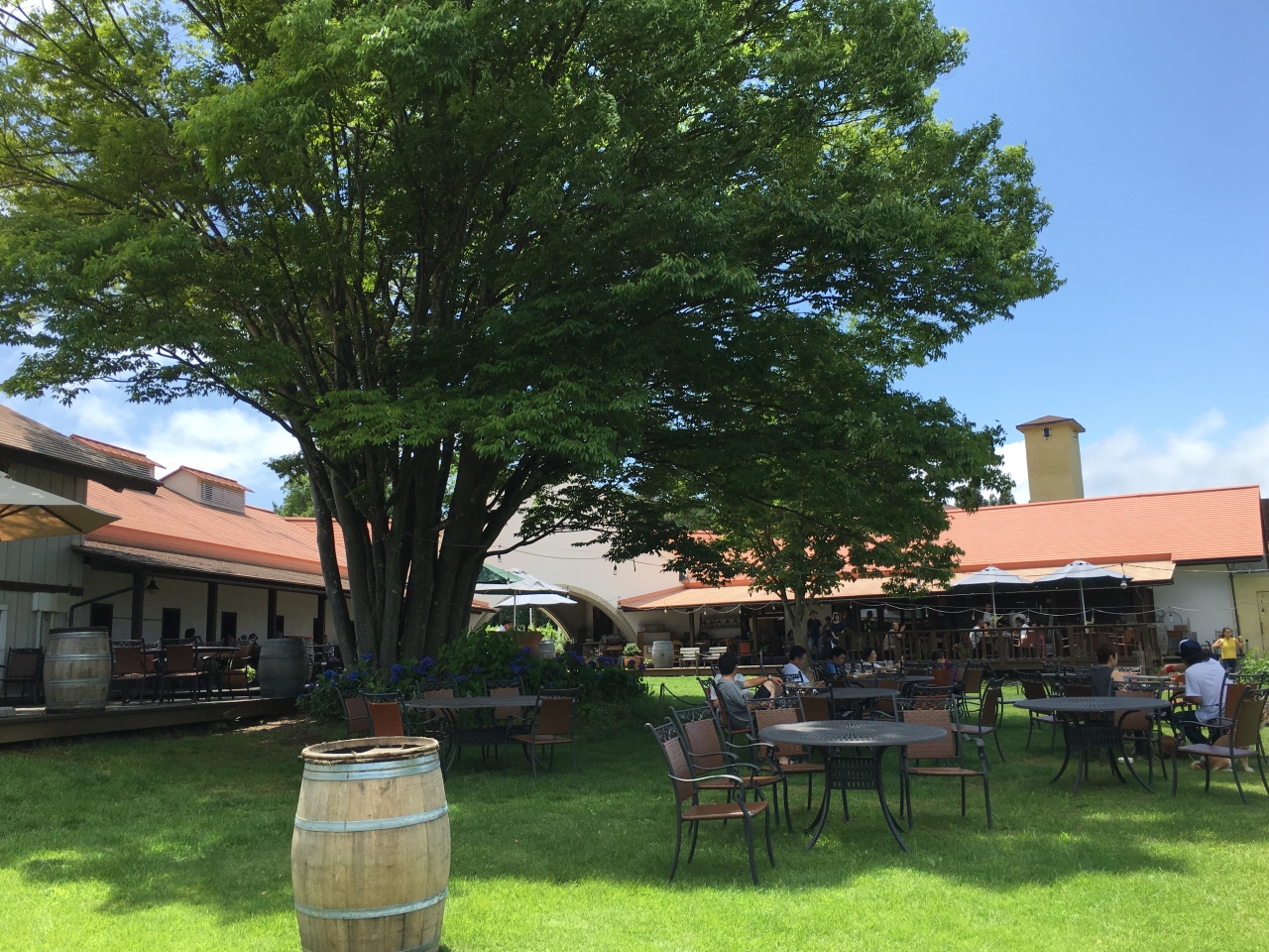 サン・クゼールのワイナリーがありますし、ショップでは様々な種類のワインの試飲や、食品の販売も営業中です。終始気持ちの良いそよ風に吹かれて、レストランのテラス席でランチがおすすめ。名物のキッシュとサン・クゼール特製のソーセージにパン。夫はワインが飲みたくて3種盛りをオーダーしました。お腹が満タンになって、満足。その後は草原でごろ寝も良し、周りの黒姫山、飯綱山、斑尾山を眺めるのもよし。長時間のドライブの疲れも一気に吹っ飛びました。・・・私は飲めないのです。