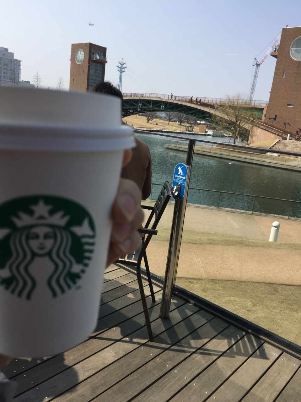 ラテを注文したあと、たまたまタイミング良くテラス席が空いたので、迷いなくテラスへ(^^)