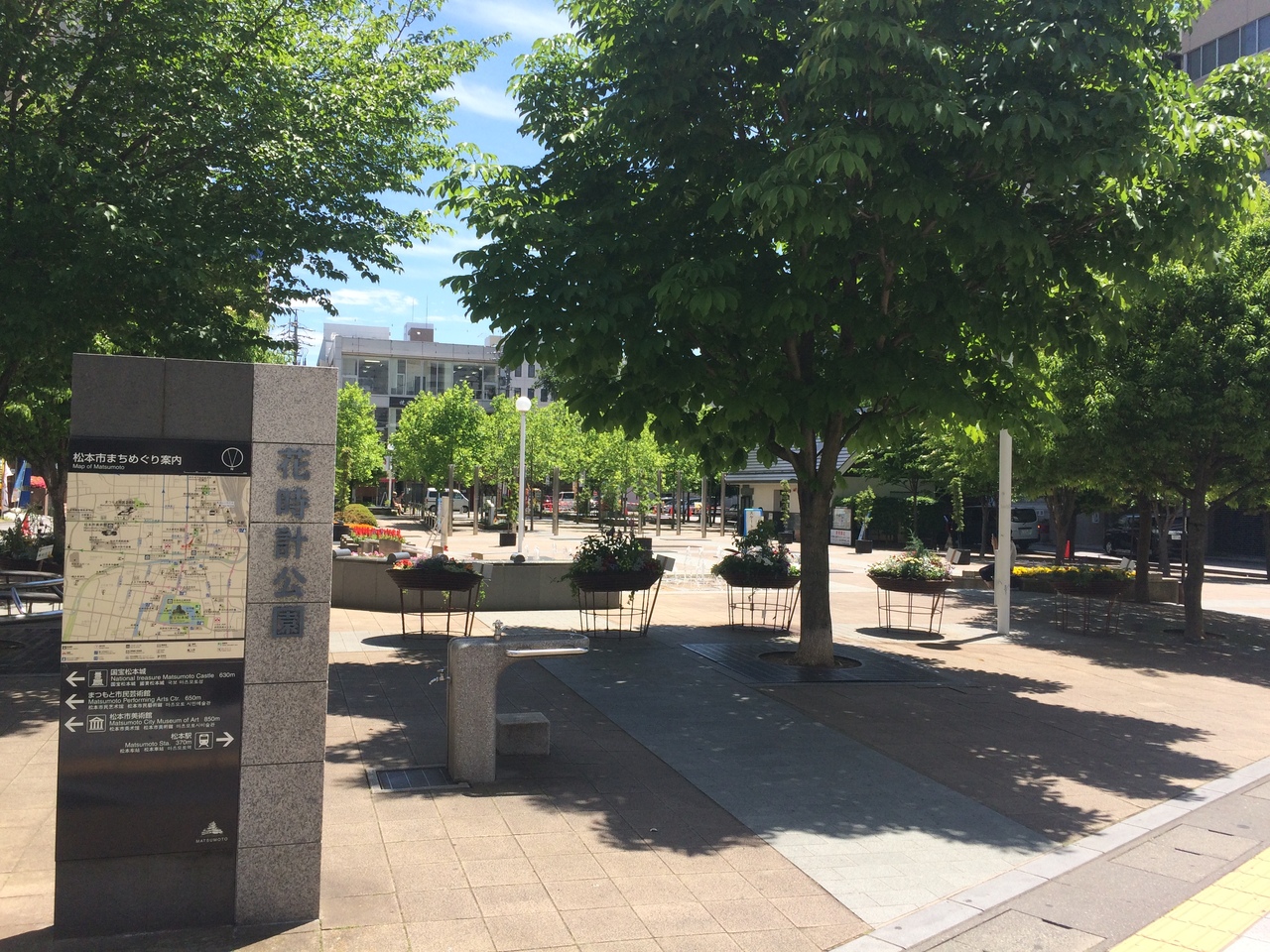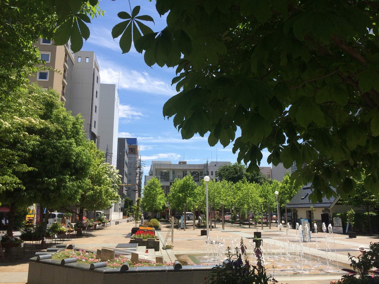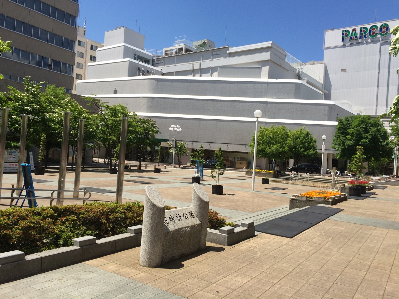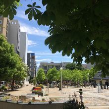 パルコの裏にある四角形の公園で周りには程よい感じで木が植えられ花壇もありベンチやトイレもあります。最も良かったのは噴水が出ていて暑さがいっぺんに吹き飛びました。周りをビルに囲まれていますが緑多く落ち着ける場所です。