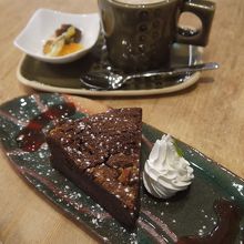 まさに生チョコレートの巨大な塊を食べているかの様な、濃厚なチョコレートケーキ。