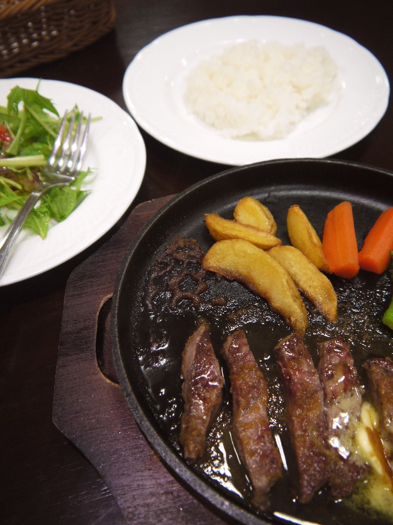 量はそれ程でもないが、柔らかく、旨味が凝縮されていた。カットされた状態で提供するのは、日本流。本来、ステーキは、でかい肉を自分でカットしながら食べるのが醍醐味なのだが。